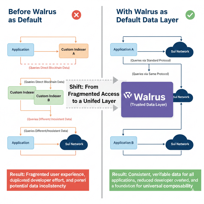 Per gli sviluppatori, questo significa costruire indexer personalizzati—middleware complessi per trovare, organizzare e servire questi dati alle loro applicazioni. È costoso, richiede tempo e porta a incoerenze. Per gli utenti, significa che l'esperienza e persino la "verità" visibile di un'applicazione possono variare a seconda di quale indexer utilizza. Questa frammentazione erode la fiducia e soffoca la composabilità che rende potenti le blockchain.