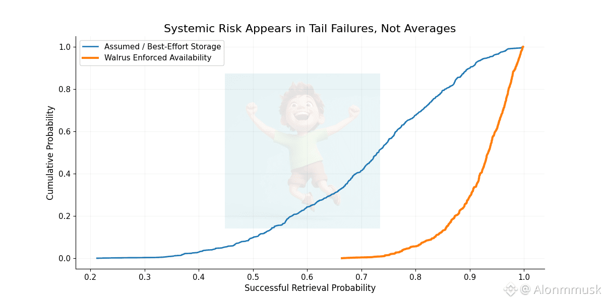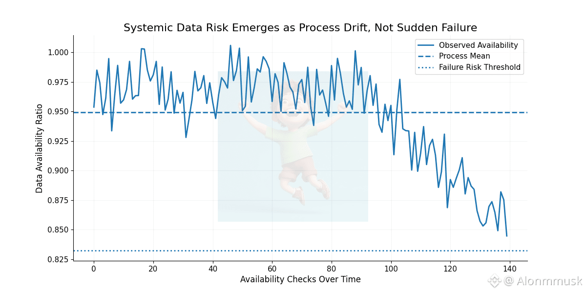 As blockchain systems mature, the most serious failures tend to be quiet. Chains keep running. Apps stay online. But something underneath starts to slip. Old data becomes harder to fetch. Verification paths grow fragile. Confidence weakens slowly, not through collapse, but through uncertainty. Walrus is built around the idea that this kind of degradation is not rare. It is what happens when data is not treated as a long-term responsibility.