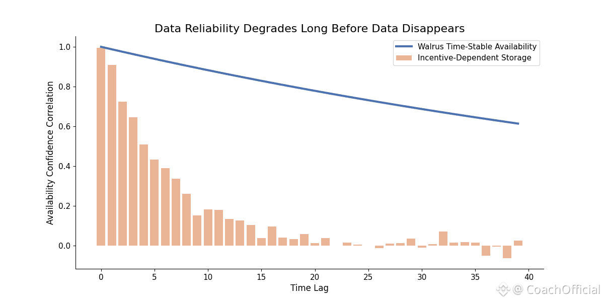 Time is the critical variable here. Data availability is rarely tested at the moment data is posted. It is tested months or years later, when incentives weaken and participants disengage. Many systems perform well under initial conditions and fail quietly over time. Walrus is designed for that delayed test. Its incentive structure encourages storage providers to remain engaged long after the initial activity has passed.