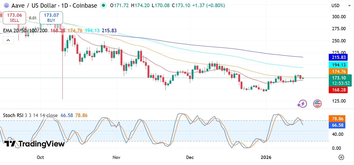 Al contrario, se i ribassisti riprendono il controllo, il prezzo potrebbe scendere nuovamente, cercando supporto intorno ai 168 dollari. Questo determinerà se AAVE entrerà in una nuova fase di rialzo o continuerà a mantenere un movimento laterale.