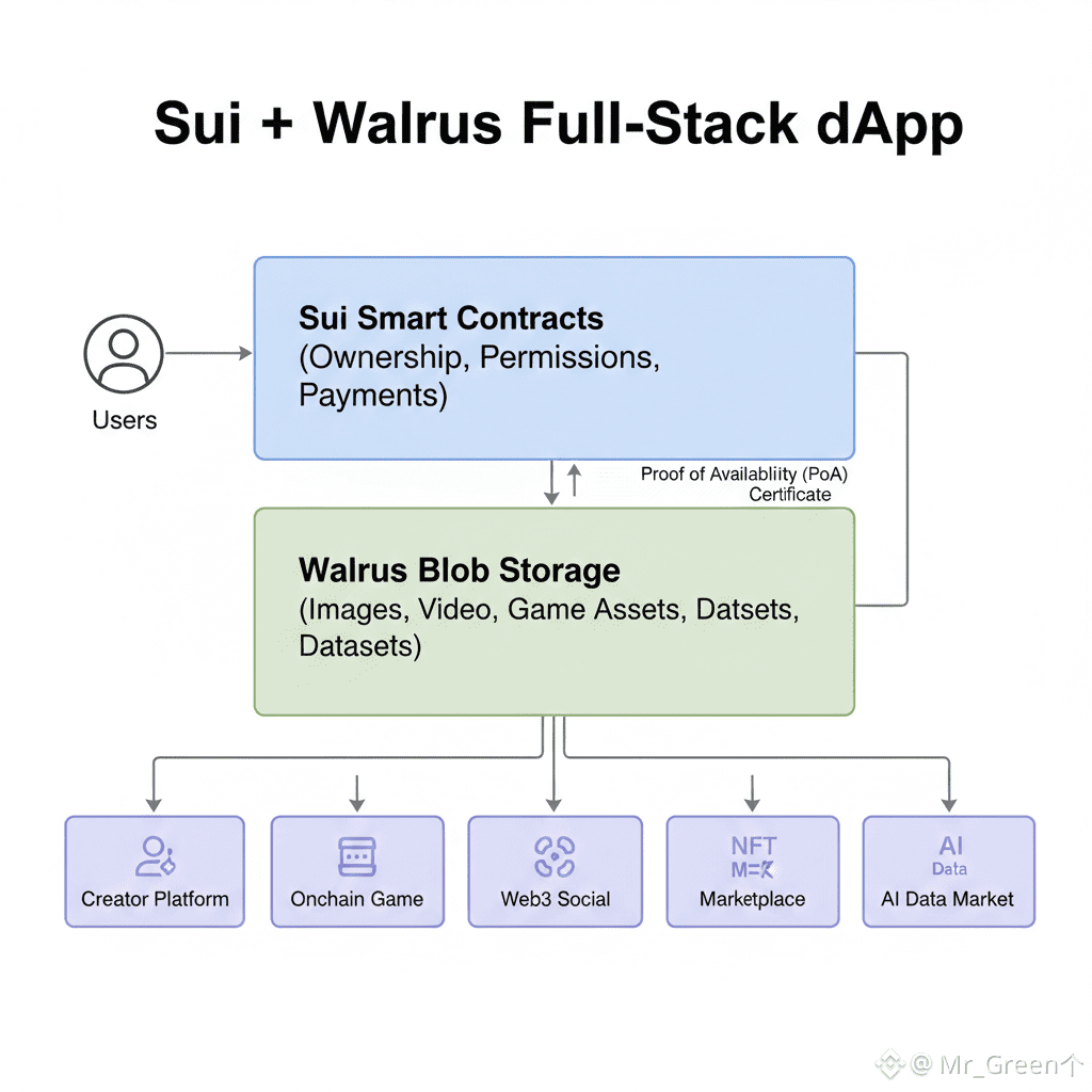 Once you have that, whole categories of applications stop being awkward and start being natural. The first category is media-first products that don’t want to pretend they’re DeFi. Imagine a creator publishing episodes, lessons, research, or art where the content itself is the product. In most crypto apps, creators sell access to a token and then route the actual files through Web2 hosting, hoping nothing breaks. In a Sui + Walrus world, the creator can sell access on Sui, subscriptions, passes, limited editions, while the actual media lives in Walrus and the app can treat “availability” like part of the business logic. It becomes possible to build a content platform where ownership and monetization are onchain, and the storage layer isn’t a hidden single point of failure.