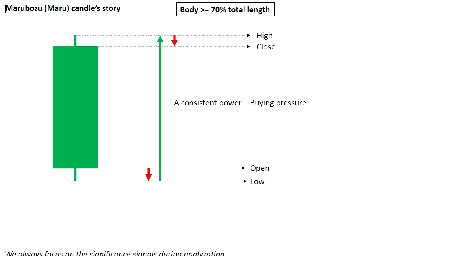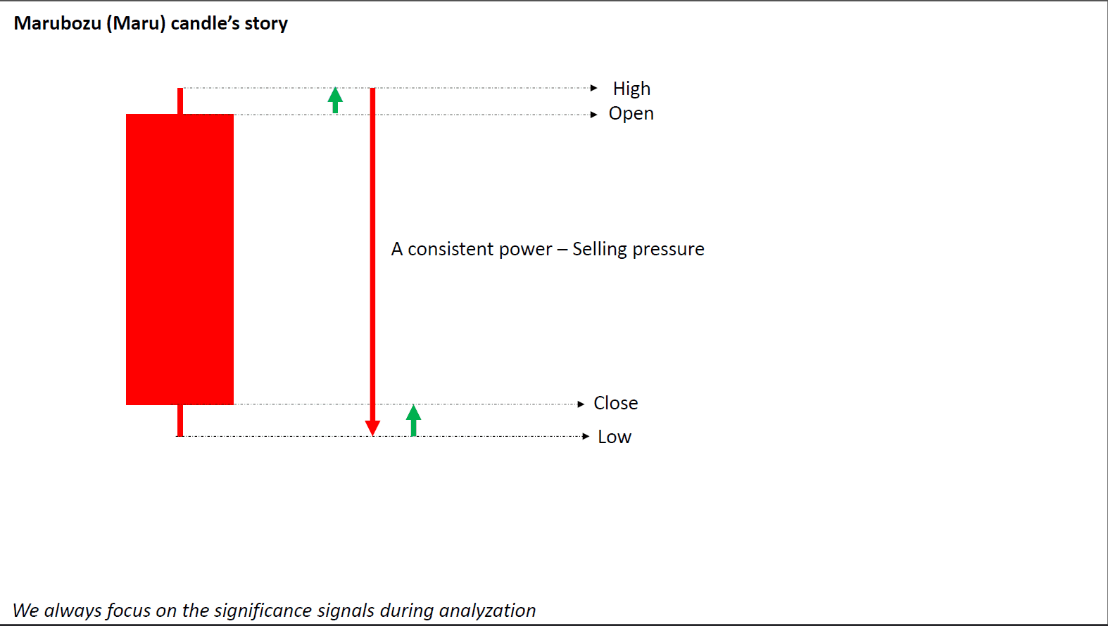 In questa parte, iniziamo con le candele Maru. Queste candele mostrano una forte pressione con poca esitazione. Una candela Maru rialzista suggerisce che i compratori sono in controllo, mentre una ribassista segnala forza di vendita. Quando diverse appaiono in sequenza, il momento spesso continua in quella direzione.