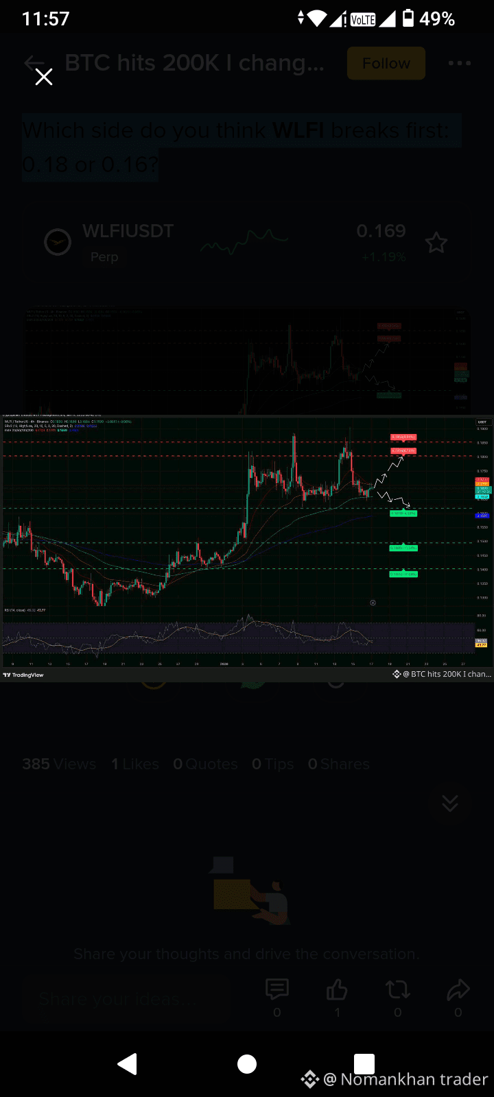 What’s your view — does $WLFI break above 0.18 or dip toward 0.16 first ?