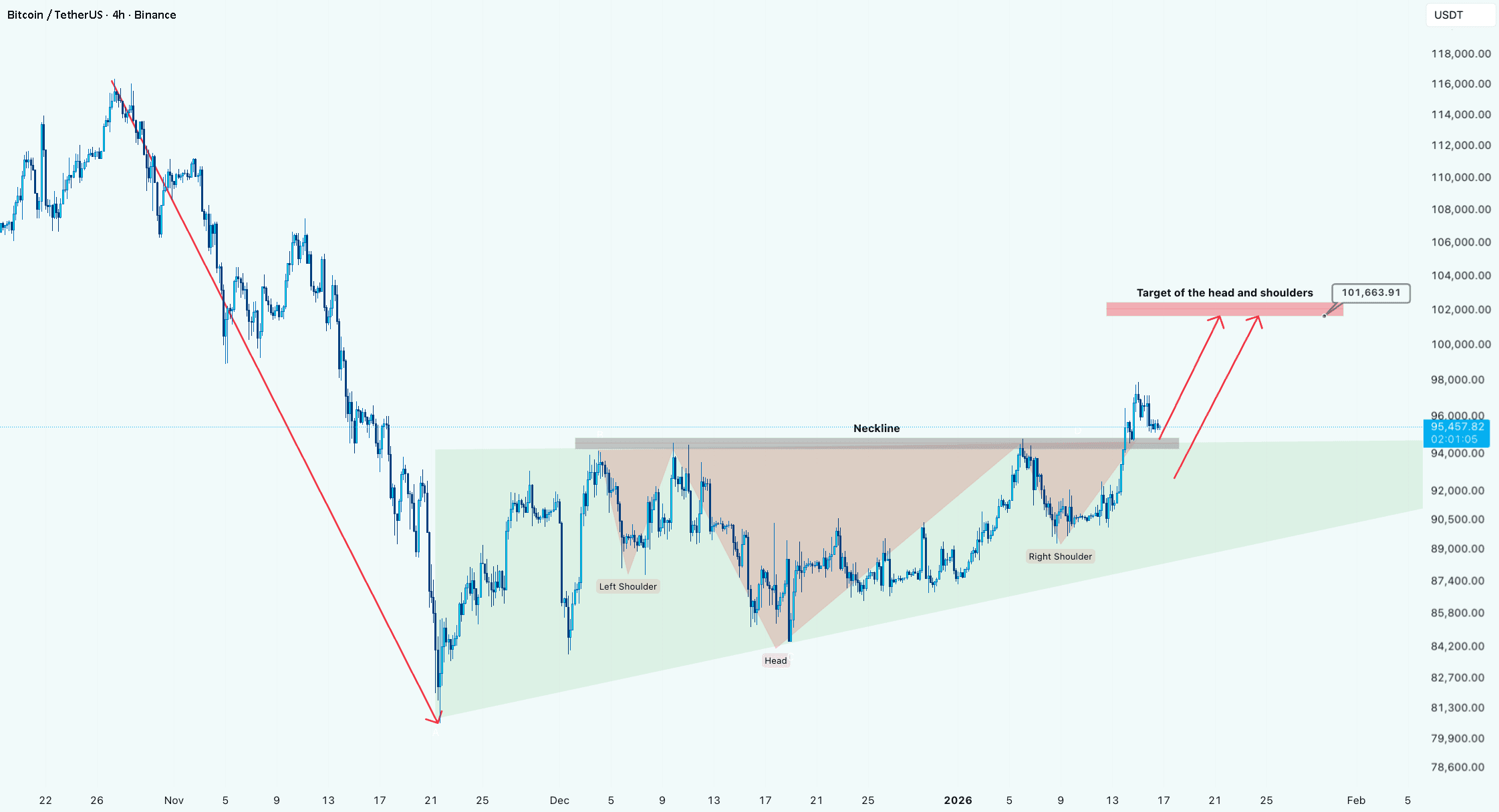 La linea del collo è rotta e il prezzo potrebbe raggiungere il livello di $101k, che è l'obiettivo dell'IH&S!