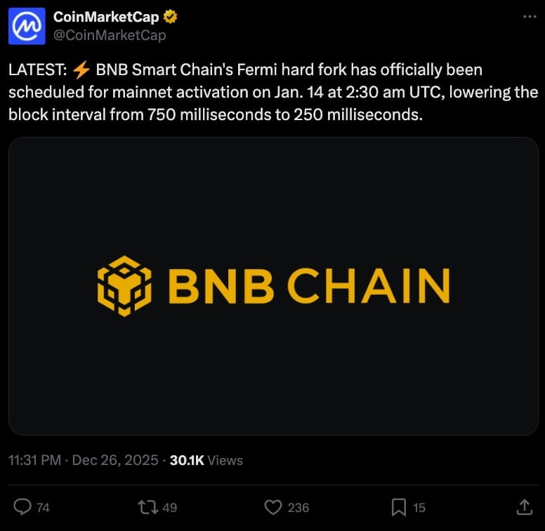 Numerosi Aggiornamenti Maggiori di BNB Chain