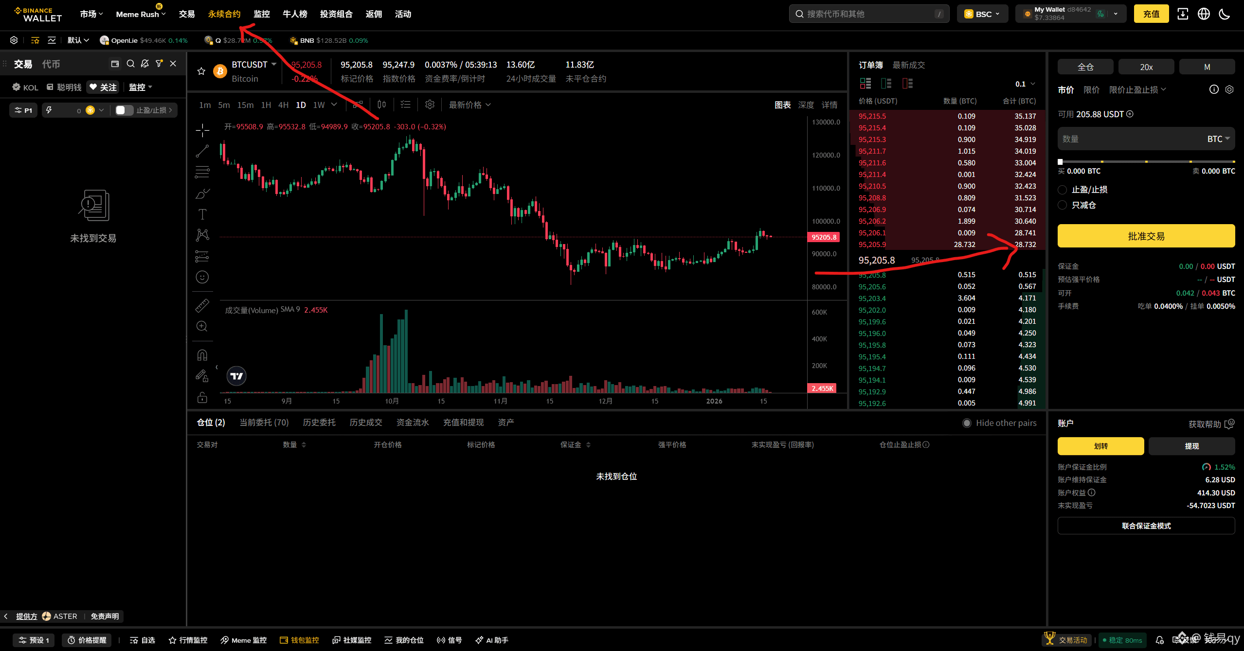 三、进入永续合约界面,请求签名 和 批准交易