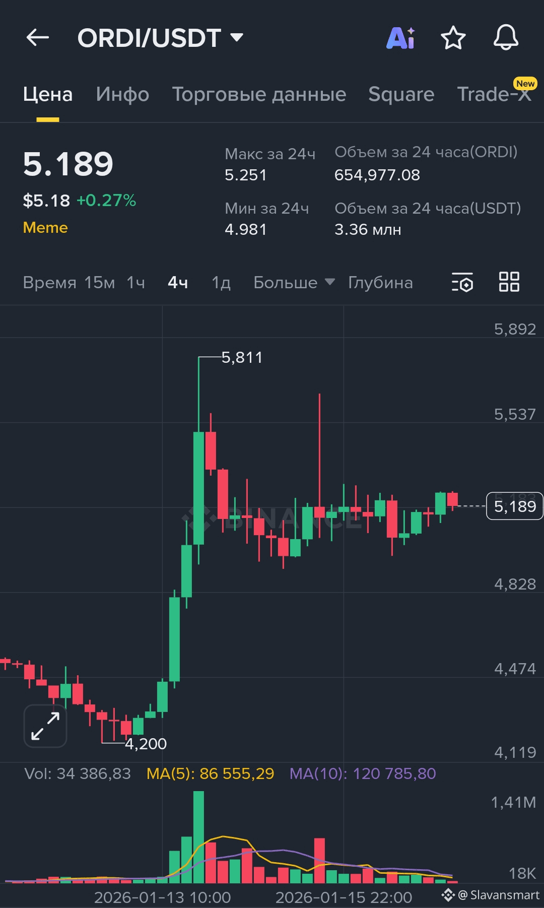 Флет под сопротивлением. Либо берёшь от поддержки 4.95-5.05💲, либо входишь на чистый пробой 5.30💲. Риск минимальный, сделка строго краткосрок.