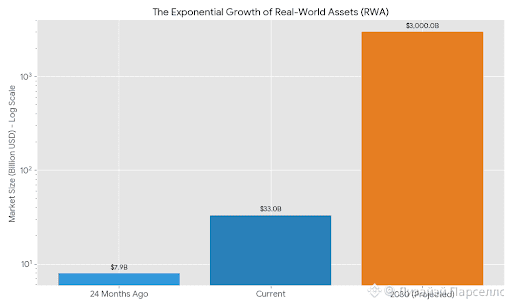 Real-World Assets (RWAs) went from $7.9B to $33B in 24 months. Analysts project $2-4 TRILLION by 2030.