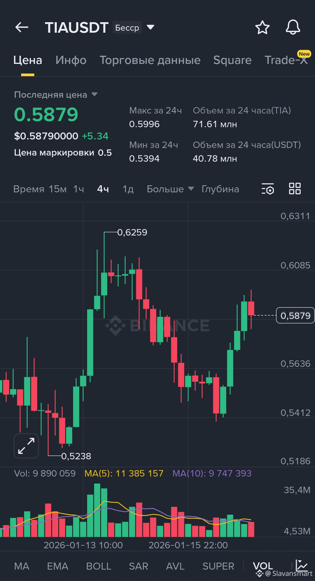 Короткий торговый план для крипто пары TIA/USDT на конец января 2026. Данные актуальны по рыночной сводке и котировкам (см. текущий курс TIA/USDT ~0.54-0.61💲согласно последним сводкам).