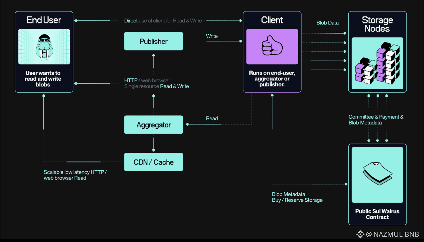 At the technical level, Walrus relies on erasure coding. Think of a large file being broken into many small pieces and spread across different storage nodes. You do not need all of them back to reconstruct the original file. You only need a portion. Even if many nodes go offline, the data survives. This is not a new idea in computer science, but applying it cleanly to blockchain use cases is the key insight. Traditional blockchains replicate data dozens or even hundreds of times. Walrus reduces that overhead to something closer to modern cloud storage, while still allowing anyone to verify that the data is actually there. For developers, this means cheaper storage for NFTs, games, AI datasets, and rollups. For blockchains, it means less pressure on validators and more room to grow. Walrus also focuses on availability proofs, so systems can confirm that data exists without downloading everything. This matters for rollups, where data must be accessible for a short window, not forever. Walrus fits naturally into that rhythm.