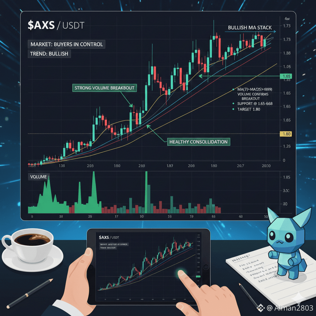 zone, price is now consolidating slightly, which is healthy after a fast move. As long as AXS holds above the 1.65–1.68