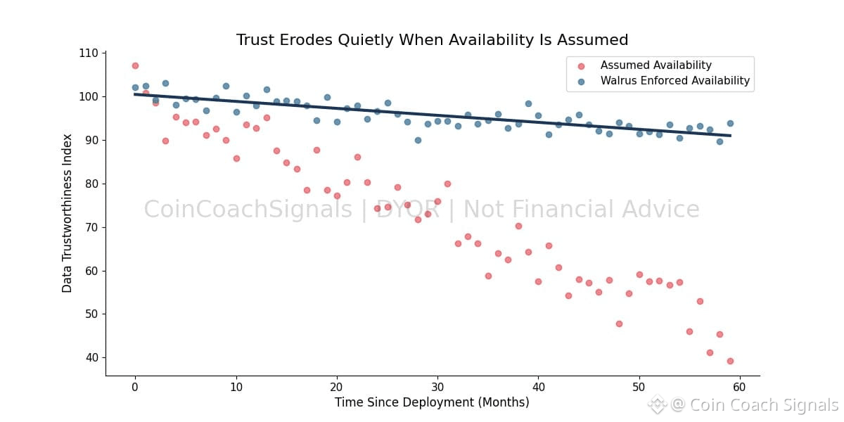 Time is the variable most systems underestimate. Data availability is rarely tested when data is fresh. It is tested months or years later, when incentives weaken and participants move on. Many systems look reliable early and degrade quietly later. Walrus is built for that delayed test. Storage providers are incentivized to stay engaged over long horizons, aligning rewards with persistence rather than momentary participation.