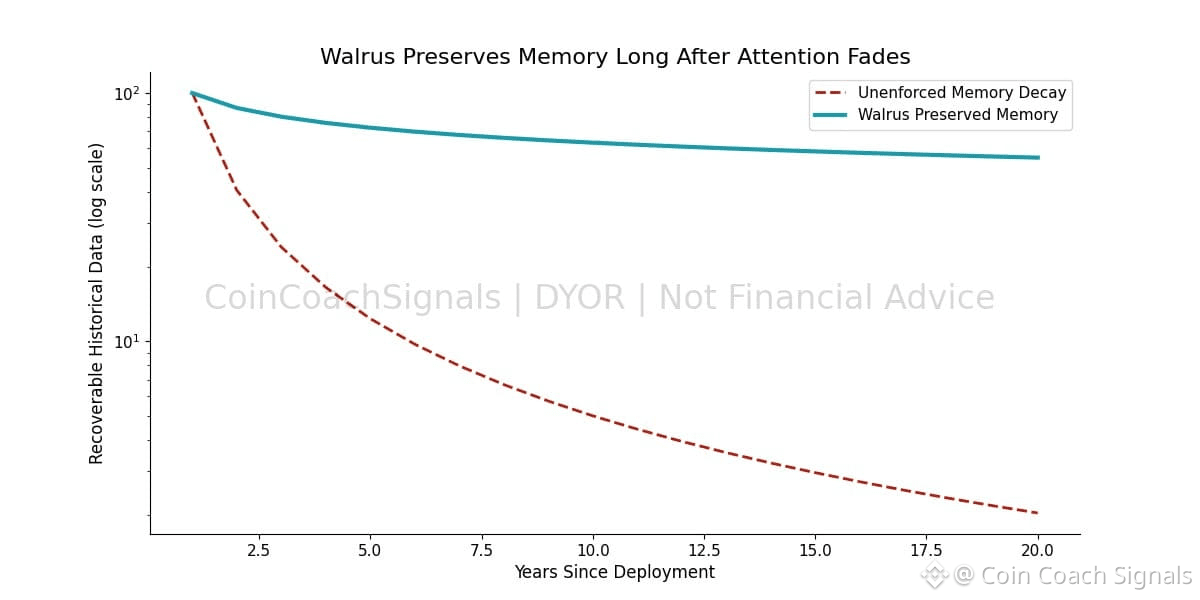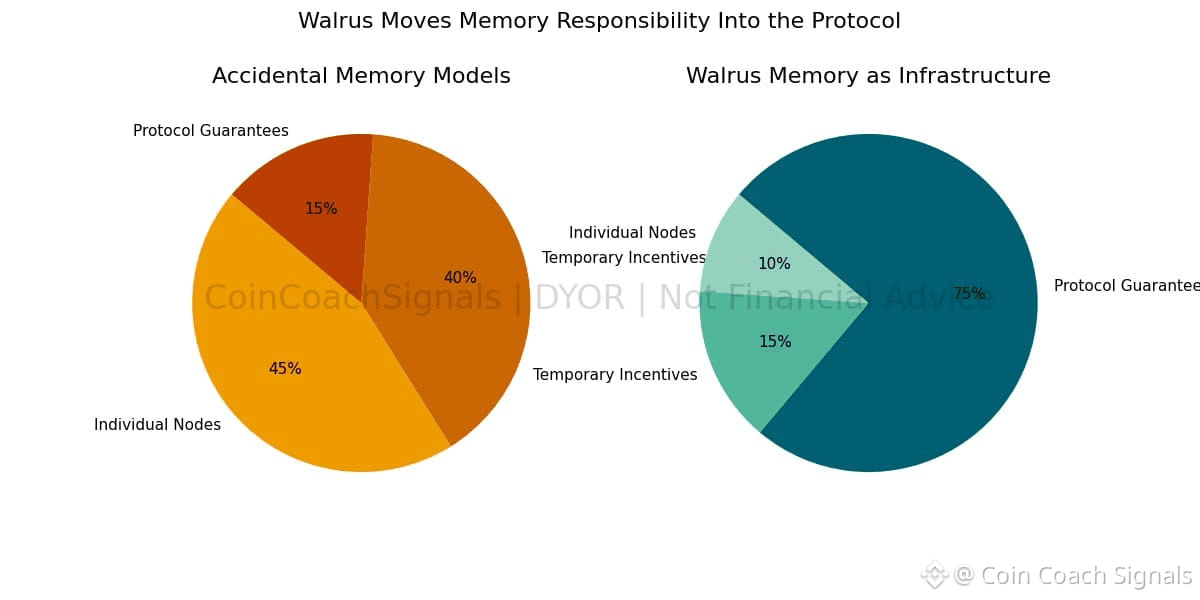 In many blockchain systems, memory exists by coincidence. Data survives because it happened to be needed at a particular moment, not because the system was intentionally built to preserve it over time. While networks are growing and incentives are strong, this weakness is easy to ignore. It only becomes visible later, when attention fades and early assumptions start to break. Walrus is built on the idea that long-term memory is not optional. It is core infrastructure.