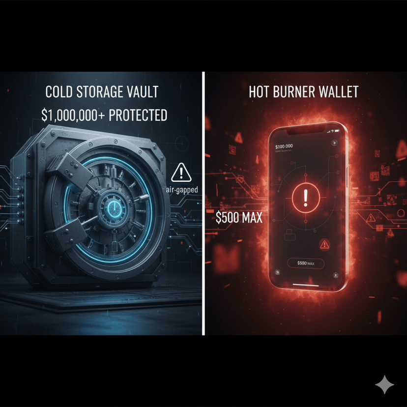 Se possiedi più di $10K e non è su un portafoglio hardware, stai scommettendo. Ledger, Trezor, qualsiasi cosa, comprane uno. Ma ricorda: il dispositivo non protegge nulla se dai via la tua frase di recupero.