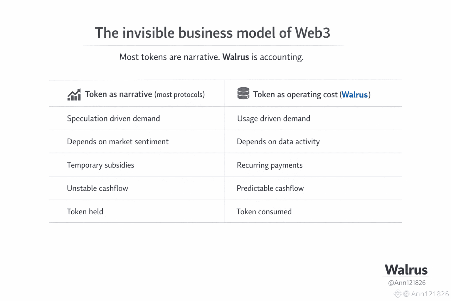 Por eso el debate relevante no es si Walrus tiene mejor tecnología que otros sistemas de almacenamiento, sino si logra sostener ese vínculo entre uso y pago en el tiempo. Si el gasto operativo sigue fluyendo a través del token incluso cuando el mercado pierde interés. Si eso ocurre, el protocolo deja de depender de ciclos externos para sobrevivir. Se convierte en algo menos excitante, pero mucho más valioso: un sistema que factura. Y esa es la frontera real en Web3. No entre descentralizado y centralizado. No entre L1 y L2. Sino entre protocolos que viven de promesas y protocolos que viven de ingresos. Cuando el ruido desaparece, solo queda eso.