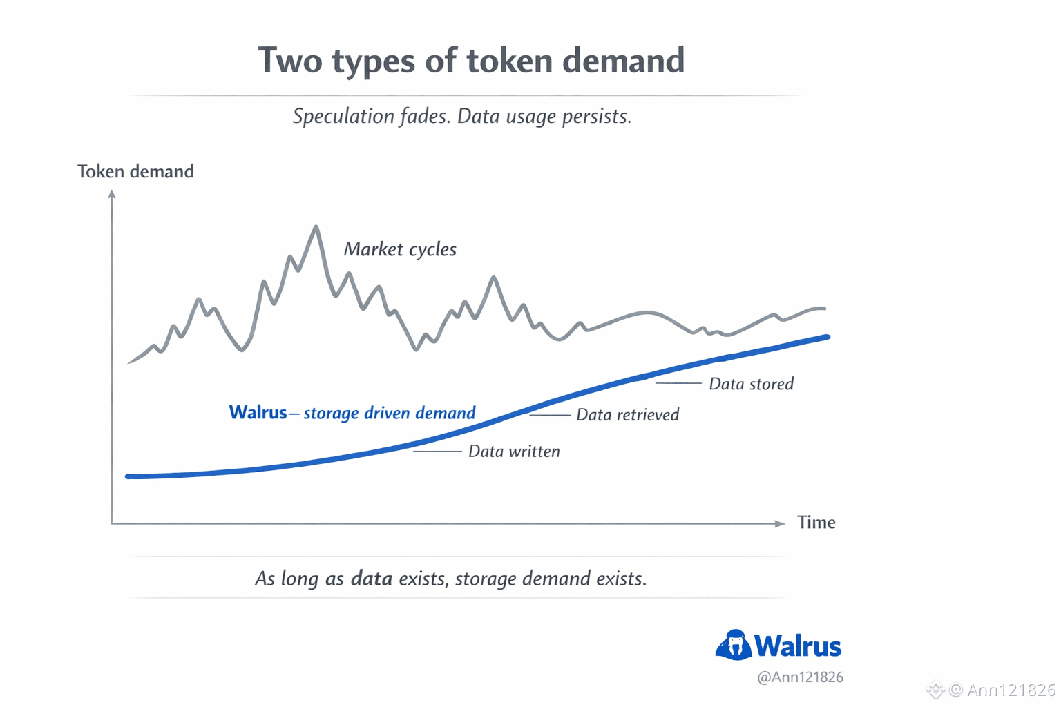 Walrus conecta su token directamente con esa capa incómoda pero fundamental: el gasto operativo real. Cada archivo almacenado, cada fragmento replicado, cada recuperación tras una falla implica consumo de recursos físicos que alguien debe pagar. $WAL no se introduce como incentivo abstracto, sino como unidad contable que internaliza ese costo. Eso cambia por completo la dinámica económica. En lugar de depender de compradores futuros para sostener el precio, el sistema genera demanda presente derivada de uso efectivo. Aplicaciones que almacenan datos no compran tokens por fe, los compran porque sin ellos su producto deja de funcionar.