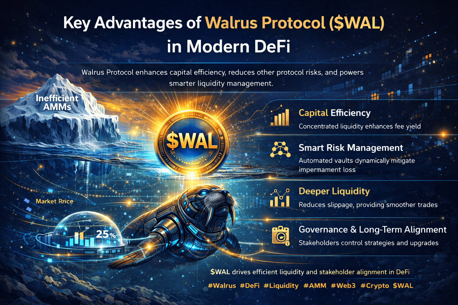 In un mercato DeFi affollato, solo pochi progetti risolvono realmente problemi strutturali. @Walrus 🦭/acc si distingue affrontando una delle maggiori debolezze di DeFi: liquidità inefficiente e mal gestita. I vantaggi di $WAL non sono solo teorici — sono benefici pratici progettati per utenti reali, fornitori di liquidità e l'ecosistema più ampio.