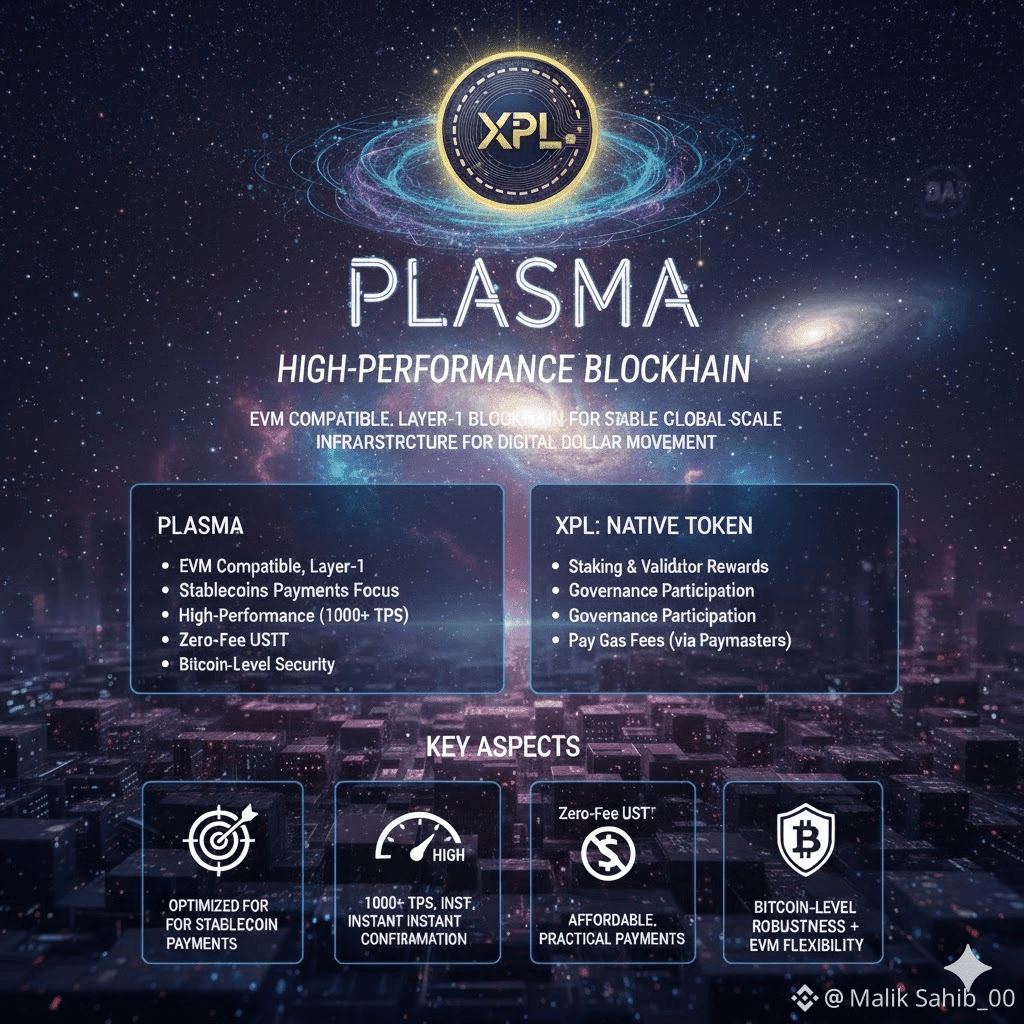 @Plasma is an EVM-compatible Layer-1 blockchain engineered specifically for stablecoin payments. It delivers high performance to facilitate transactions efficiently and at a global scale. Unique features such as instant transfers, fee-free USDT transfers, and Bitcoin-inspired security distinguish Plasma from multipurpose smart contract platforms, providing a dedicated infrastructure for the movement of digital dollars.