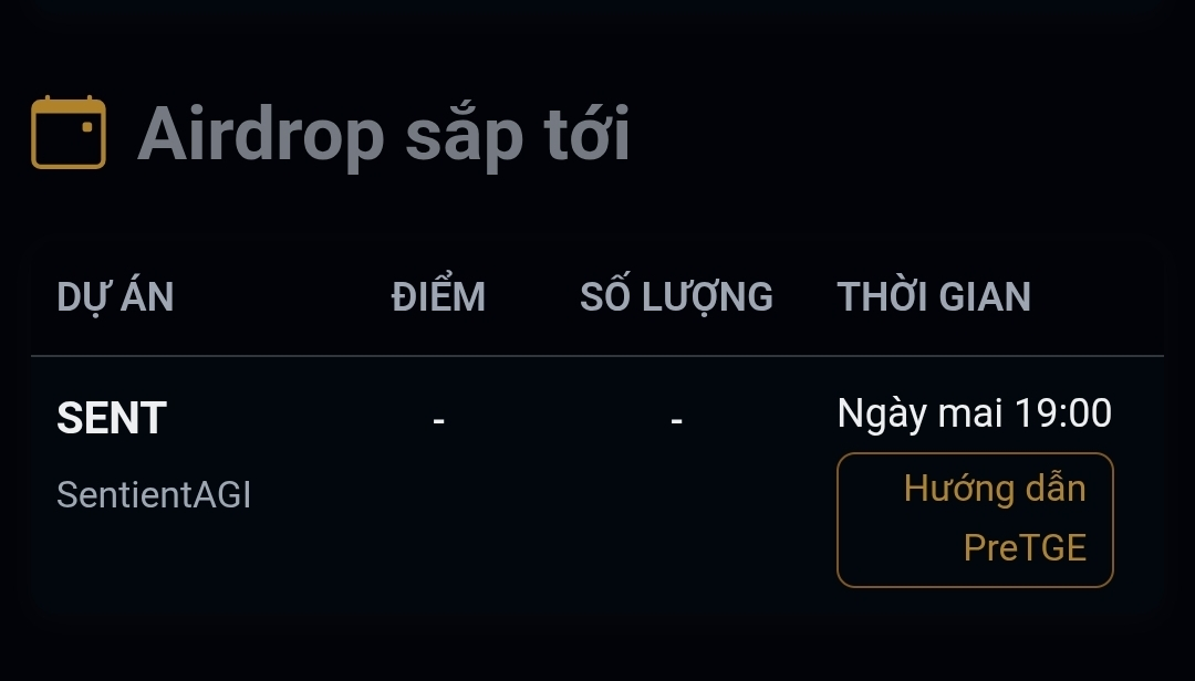 Domani, 19.01 ci sarà un airdrop PreTGE da binance coin $SENT , alle 19:00, non vedo l'ora, sicuramente dovrò impostare una sveglia per non dimenticare. Non so quanto denaro guadagnerà il progetto sopra.