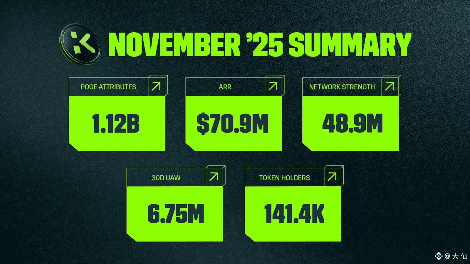 网络活跃用户数为 4890万,独立活跃钱包数量为 675 万个,KGEN 代币持有者总数为 141400 人,各项数据还在持续提升