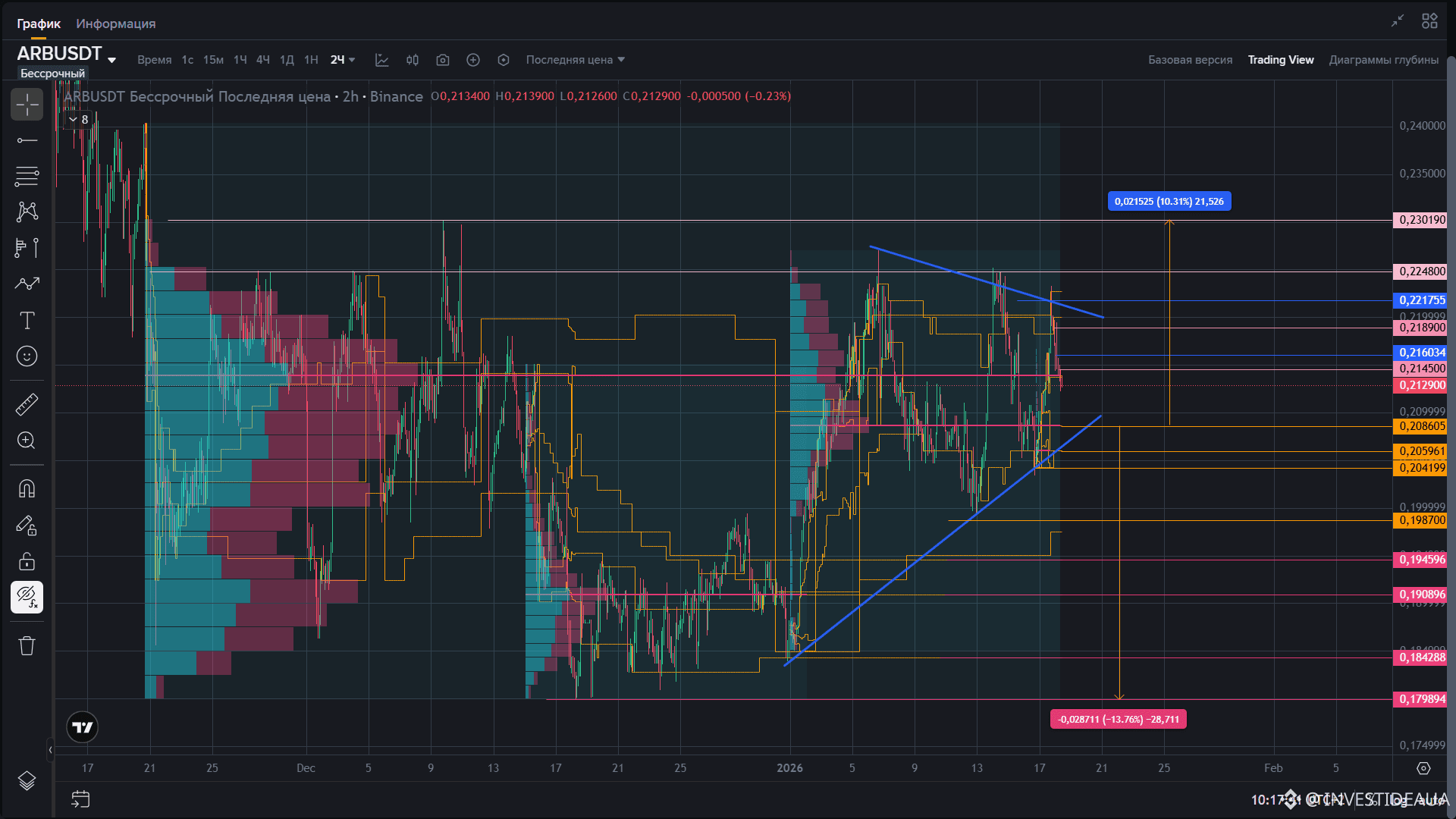 База: рынок продолжает жить внутри симметричного треугольника и внутри зоны накопления 0.179894–0.203190 как фундаментальной “нижней камеры”.