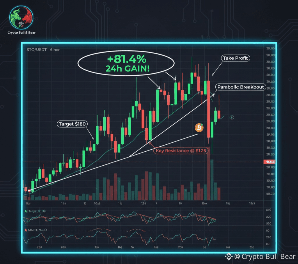 ​Parabolic Breakout Confirmed: As evident from the chart, STO has entered a textbook "parabolic breakout" phase. This indicates a rapid acceleration in price, often seen in tokens with strong underlying fundamentals or significant market catalysts.