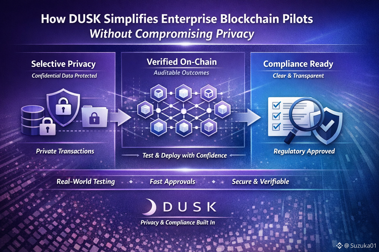 @Dusk enables enterprises to run blockchain pilots while keeping sensitive business data confidential. Many organizations hesitate to move beyond testing because exposing financial or operational data on public networks creates compliance risks.