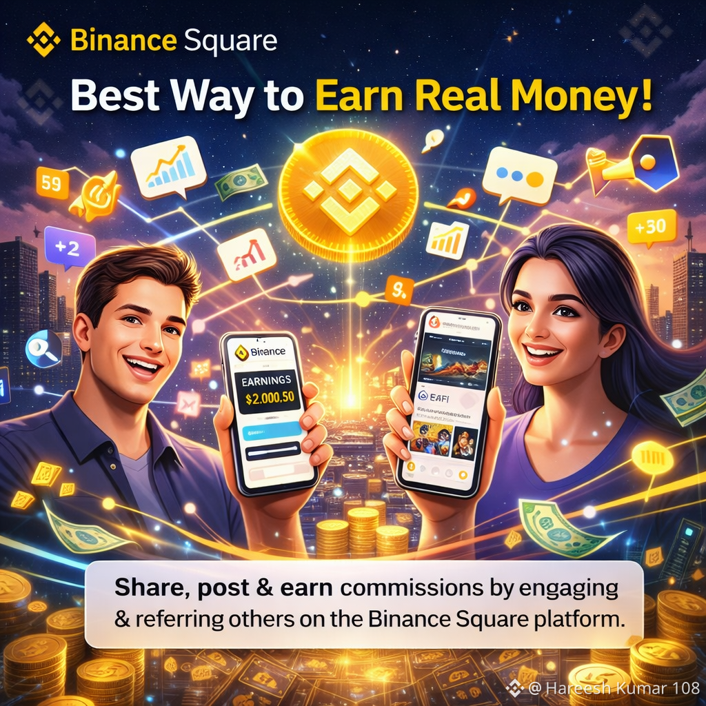 In my opinion, the Binance Square system is one of the best and most innovative features in the crypto ecosystem. It gives everyone an equal opportunity to share their thoughts, knowledge, and experience by posting content, regardless of whether they are a beginner or an expert. What makes Binance Square truly valuable is that users can not only express their opinions but also earn real commissions through engagement and referrals. This creates a fair and motivating environment where effort and creativity are rewarded. It also helps people stay updated with market trends, learn from the community, and build personal influence while earning real money in a transparent and trusted platform.
