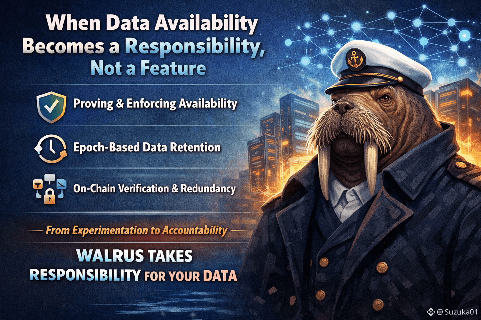 @Walrus 🦭/acc is designed for the moment when applications can no longer afford “best-effort” data availability. Instead of assuming data will remain accessible, Walrus treats availability as something that must be continuously demonstrated and enforced.
