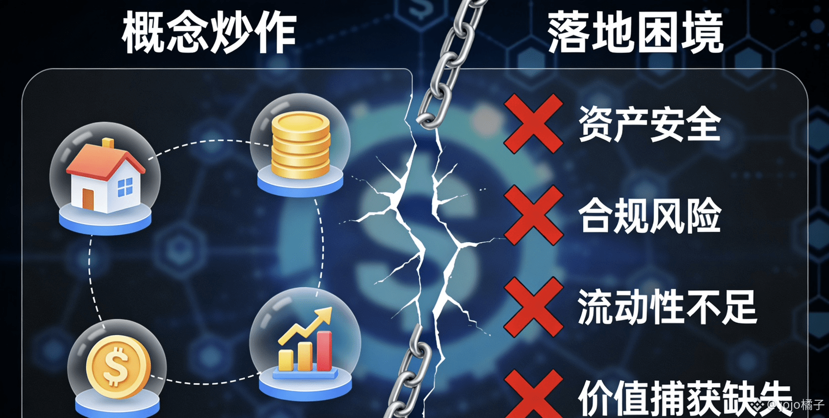 一是资产安全缺乏保障。很多RWA项目只是将资产信息简单上链,线下资产的管控仍然依赖中心化机构,存在资产挪用、篡改的风险;一旦中心化机构出现问题,链上代币就会变成“无资产支撑的空气币”。