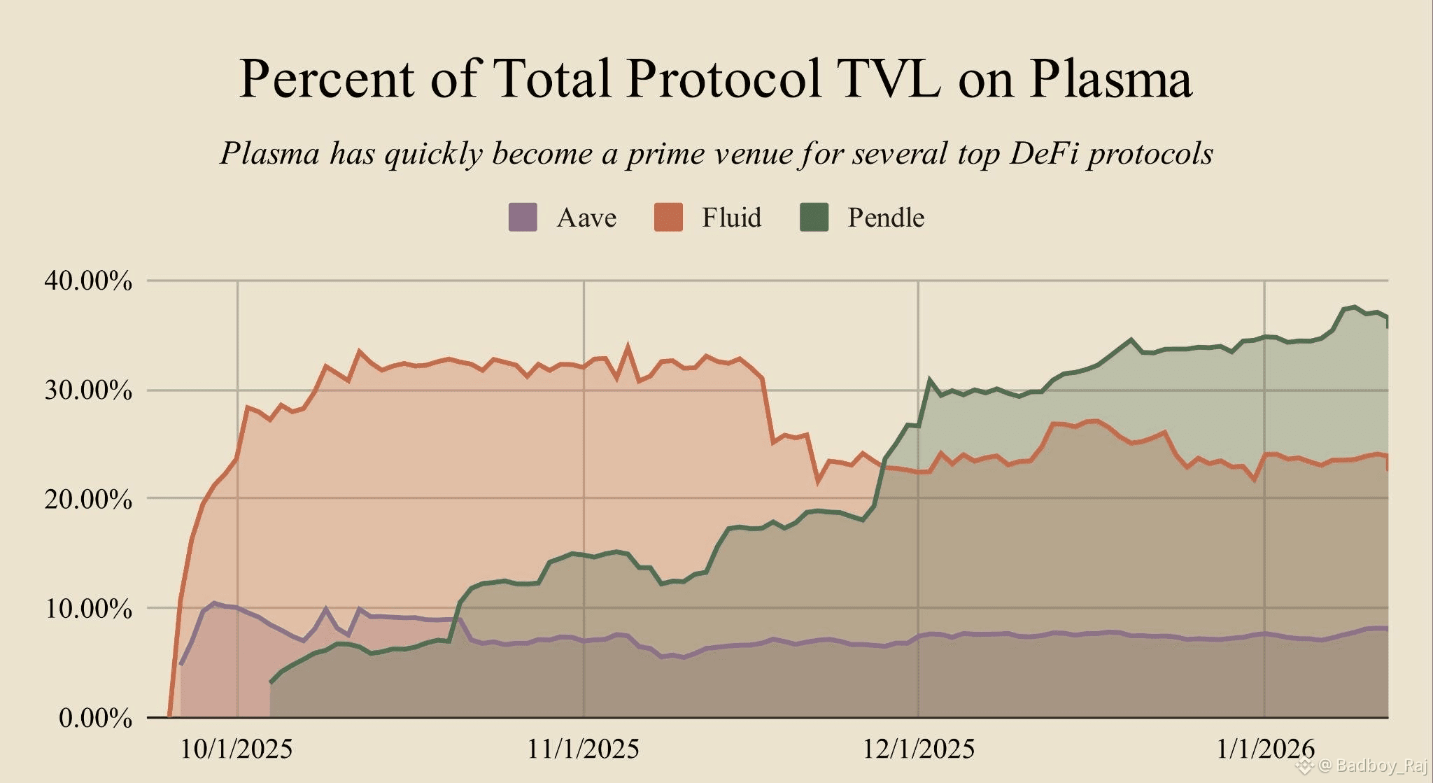 ➥ Pendle leads the shift: ~35–37% of its total TVL now lives on Plasma. From near zero to dominant in a few months.