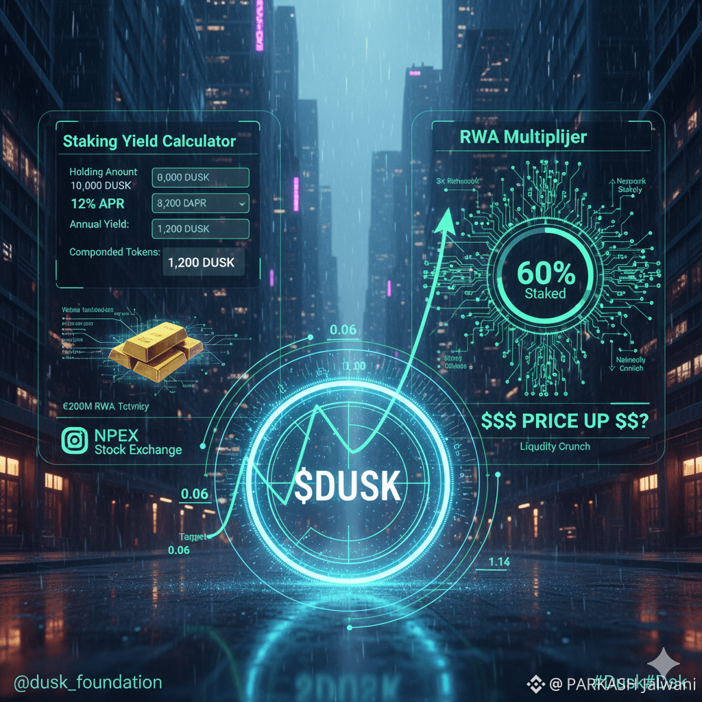 The "calculatory" advantage here is the compounding effect. For an investor holding 10,000 $DUSK, a 12% yield adds 1,200 tokens annually. In a bullish market where the asset targets a move toward the $0.12 resistance level, the dollar-value yield scales exponentially compared to static holdings.