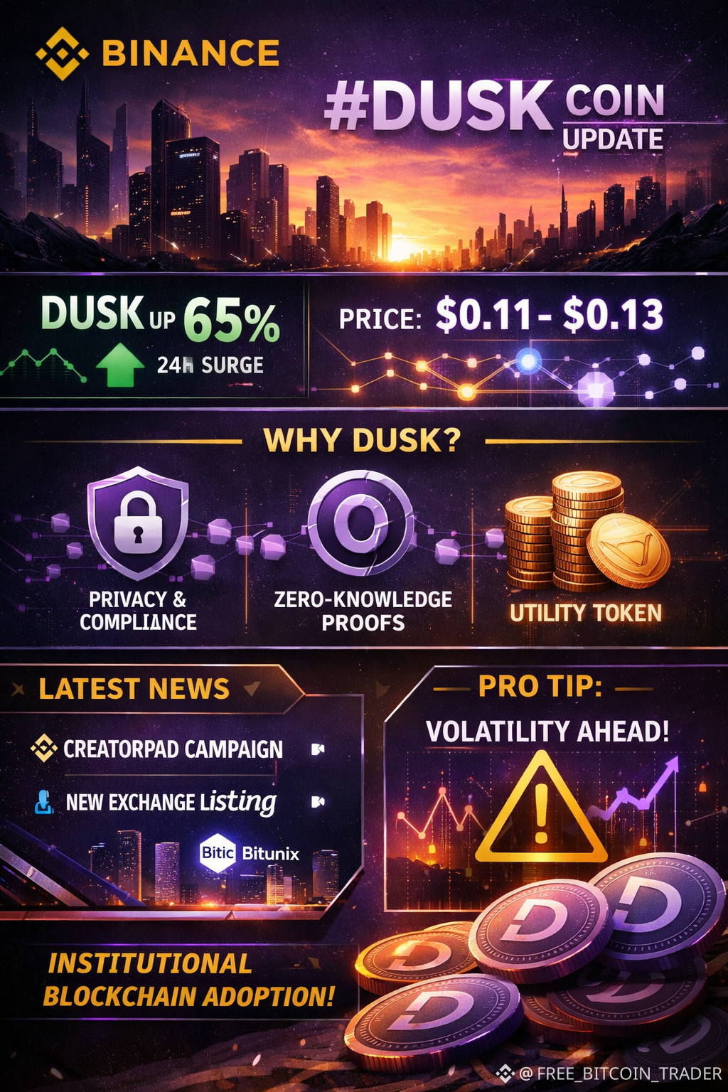 • Volatility Risk: Like many altcoins, $DUSK can see rapid price swings — gains and drops can be swift. Always research and manage risk. �