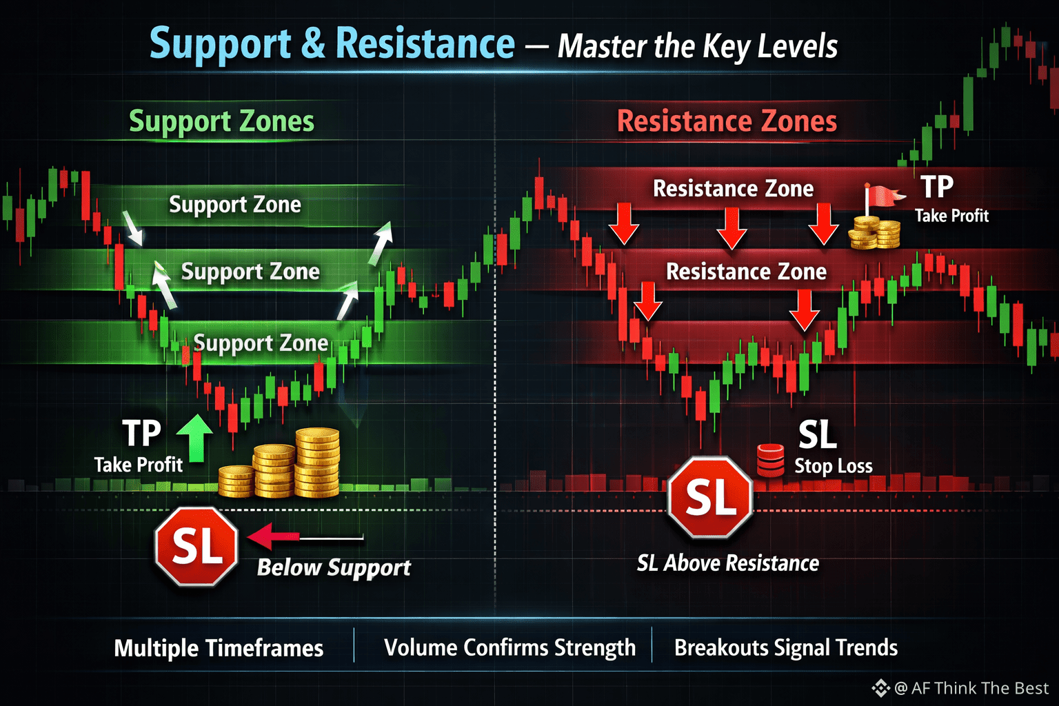 Draw support and resistance on multiple timeframes for accuracy. Short-term levels may differ from long-term zones.