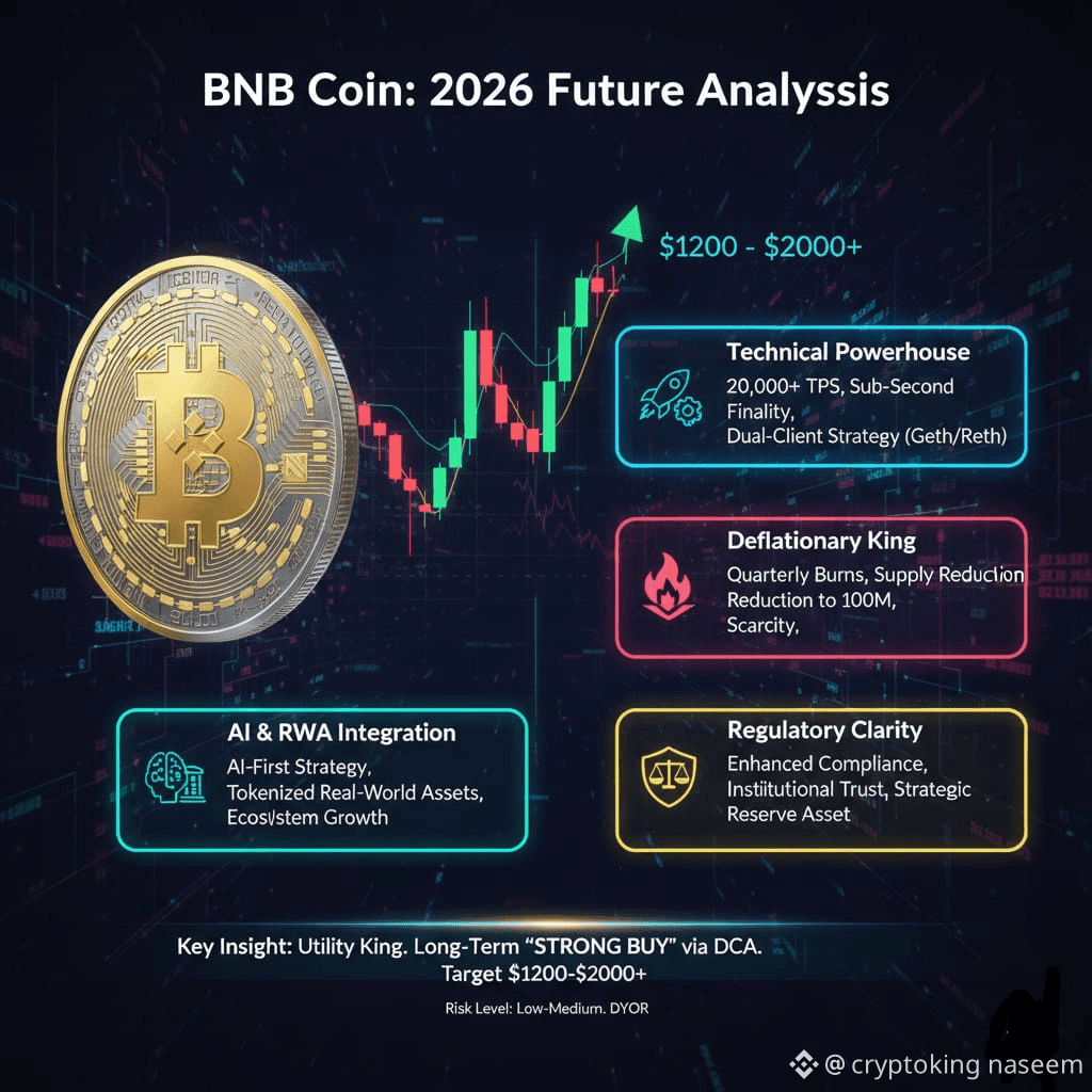 $BNB Once primarily known as a simple exchange token, BNB has evolved into a foundational pillar of the crypto ecosystem—a true "Infrastructure Giant." The year 2026 is poised to be a pivotal turning point, solidifying this status through major technical, economic, and strategic advancements.