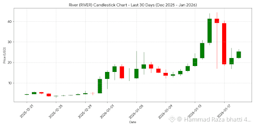 $RIVER River (RIVER) has emerged as one of the standout performers in the early 2026 crypto market, driven by its innovative approach to multi-chain stability and high-profile institutional backing. Below is a concise analysis and a candlestick chart showing its recent explosive volatility.