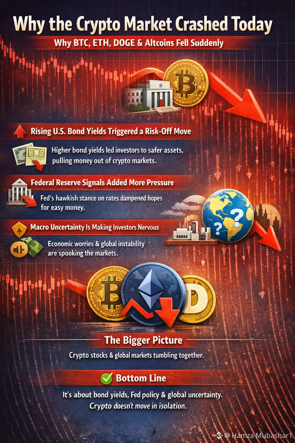 The crypto market saw a sharp sell-off today—and it wasn’t random. The drop was driven by a combination of macro-economic pressure, changing investor sentiment, and growing global uncertainty. Let’s break it down in a simple and clear way.