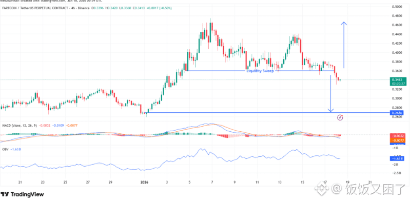 过去 24 小时,#Fartcoin 价格暴跌超过 10%,跌破了 0.36 美元大关。这使得其 1 月份回报率降至约 26%,尽管年初一度突破 0.40 美元。市场原本预期,在 2025 年末表现疲软之后,第一季度可能会迎来反弹,但目前价格仍在回落。