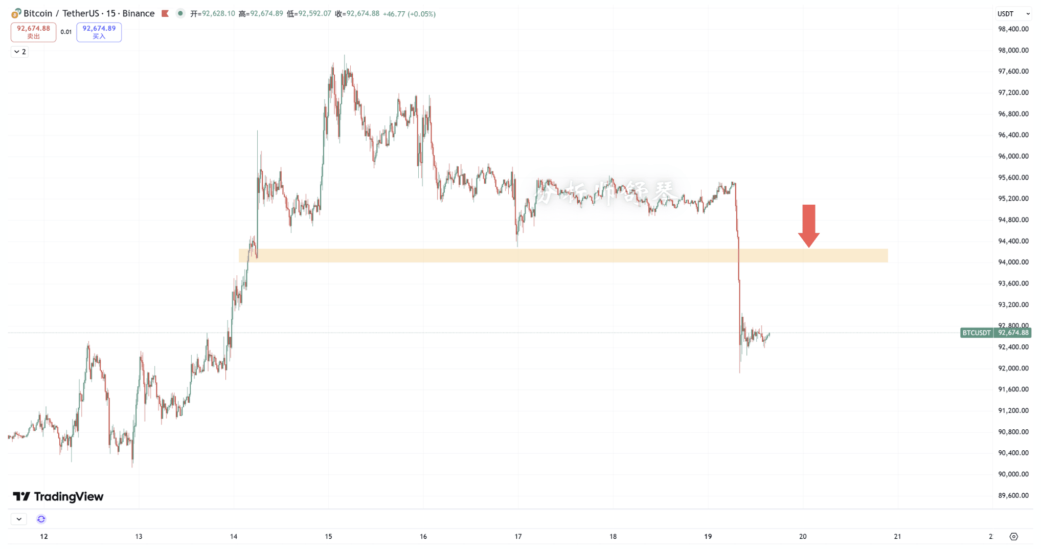 1. Il supporto attuale per Bitcoin è intorno a 91.300, questa volta il prezzo è sceso a 92.000, quindi c'è ancora un po' di distanza dal supporto, aspetterò che arrivi vicino a 91.300 per aprire una posizione lunga, mentre per andare short lo farò qui: