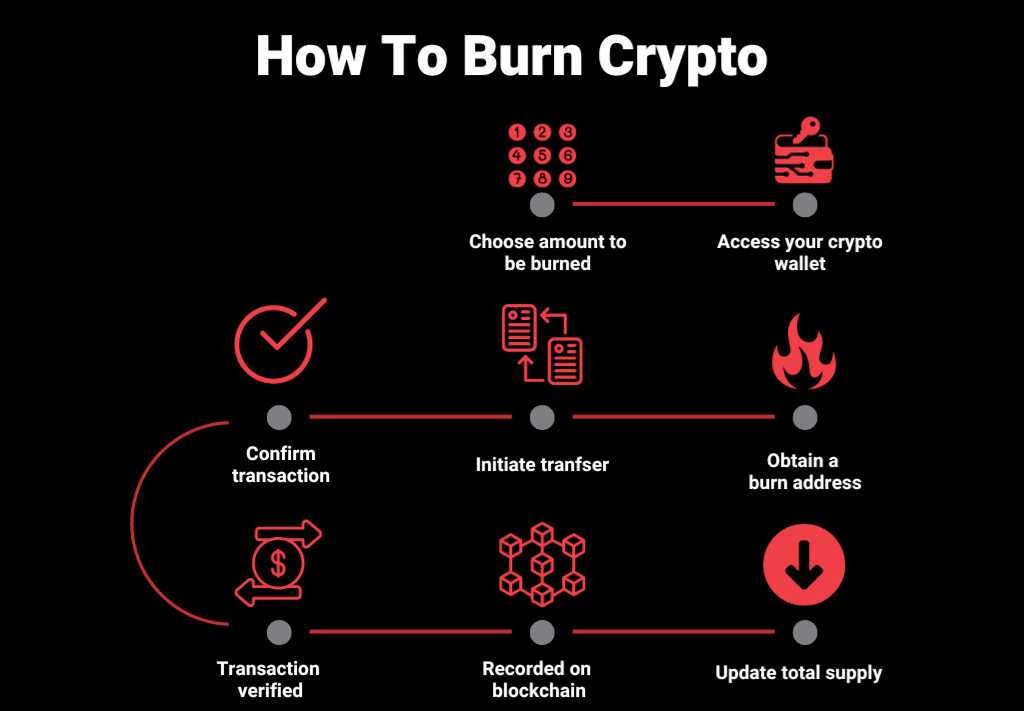 Meccanismo: I token vengono "bruciati" inviandoli a un indirizzo di wallet senza uscita (spesso chiamato "indirizzo di burn" o "buco nero") che nessuno controlla o può accedere. Questo indirizzo è solitamente qualcosa come 0x000000000000000000000000000000000000dead nelle reti basate su Ethereum. Una volta inviati lì, i token sono effettivamente fuori circolazione per sempre, poiché non esiste una chiave privata per recuperarli.