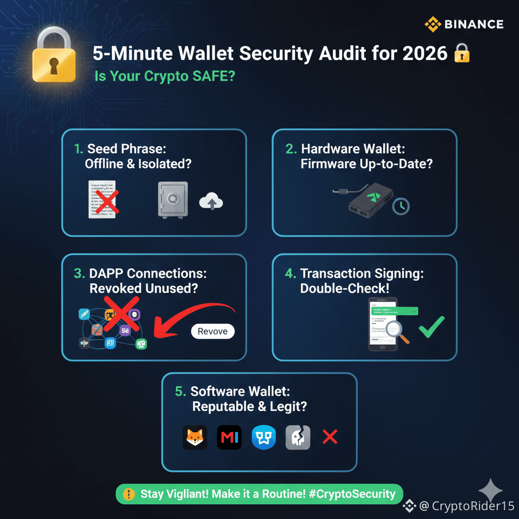 In 2026, with institutional adoption soaring and new threats emerging, ensuring your crypto wallet's security is more critical than ever! Don't wait for a hack to regret it. Here's a quick, 5-minute checklist to audit your defenses RIGHT NOW.