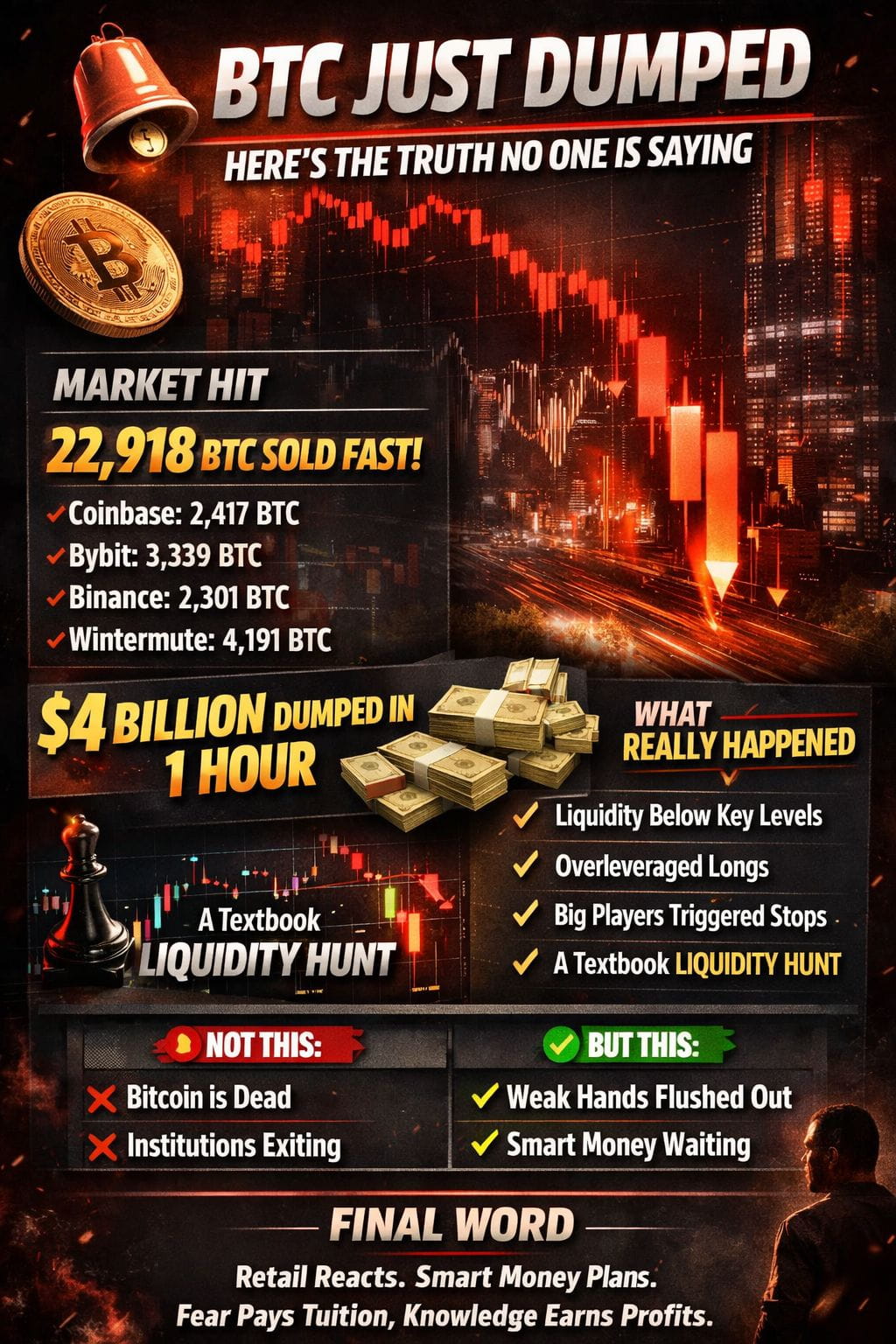 Bitcoin ka recent sharp dump dekh kar bohot se log panic mein aa gaye. Social media par fear phail gaya, lekin jo cheez zyada tar log miss kar rahe hain wo yeh hai:
