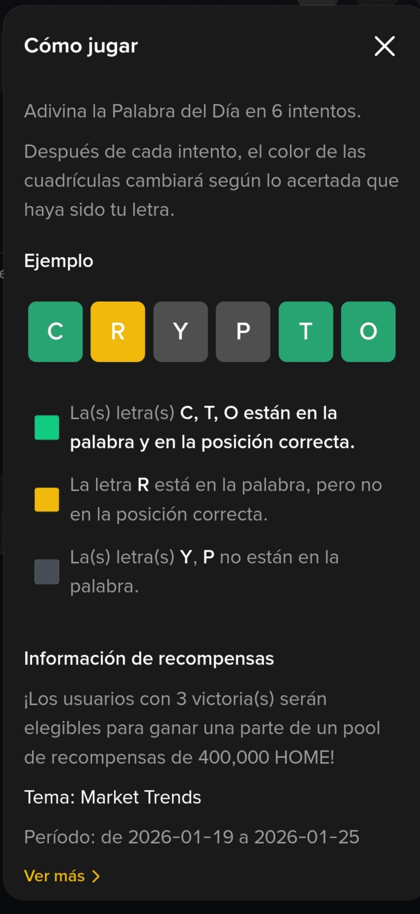 Usuarios que obtienen un total de tres respuestas correctas durante el Período de Actividad son elegibles para un participación igual de 400.000 vales de tokens HOME.