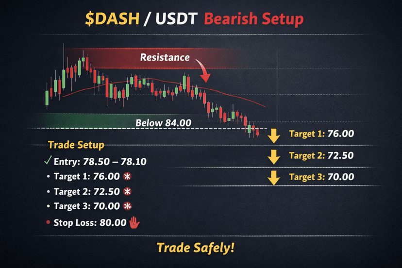 Finché DASH rimane sotto 84.00, la pressione al ribasso rimane. Gli acquirenti tardivi potrebbero trovarsi bloccati se il movimento continua.