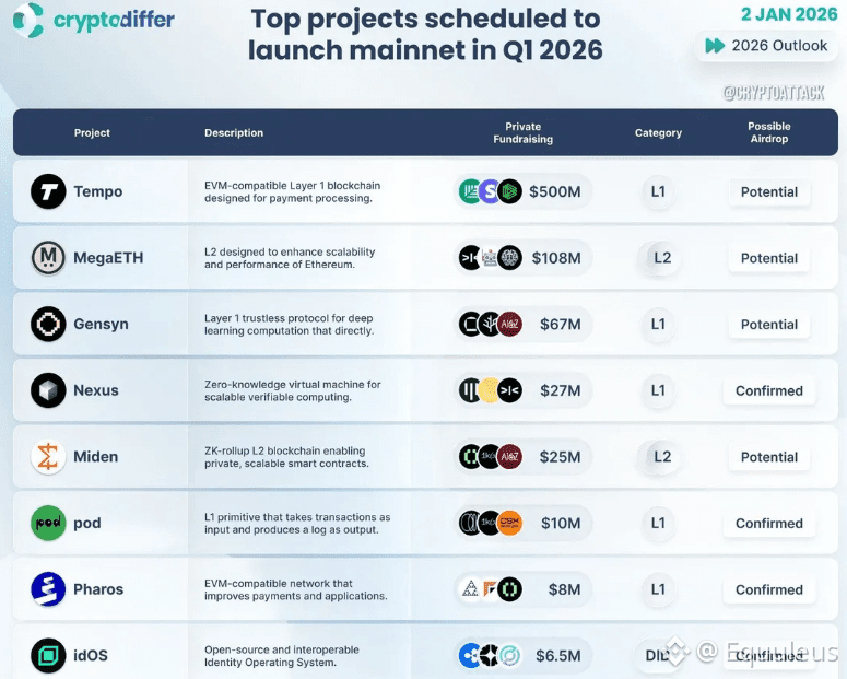 Кожен з нових блокчейнів вирішує чітко окреслену задачу. Блокчейн Tempo — платежі, у MegaETH це масштабування в реальному часі, Gensyn і Nexus націлені на обчислення та верифікацію, а Miden на приватність, pod — це мінімальні затримки, Pharos — практичний фінтех, а idOS про цифрову ідентичність.