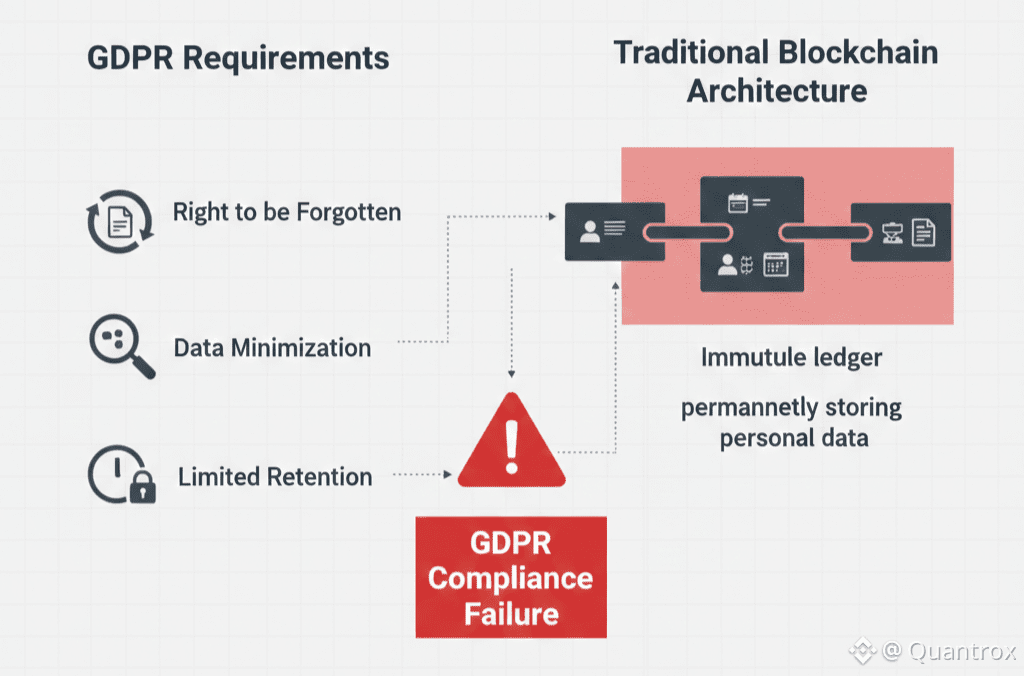The “right to be forgotten” didn’t break blockchain in general. It broke architectures that embedded personal data into immutable public ledgers. Dusk built a different model that keeps personal data off-chain while maintaining verifiable trust on-chain.