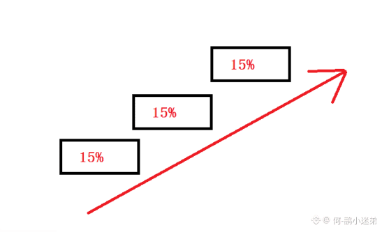 这类方法主要适用于行情启动(单边上涨的时候)同时跟进的投资者,事先把准备入场的资金量进行等分,我们常说的二分之一、三分之一仓位就是典型的矩形仓位管理法。初始进场的资金量,占总资金的固定比例,随着币价持续上行,后面机会出现,再按这个固定比例加仓。