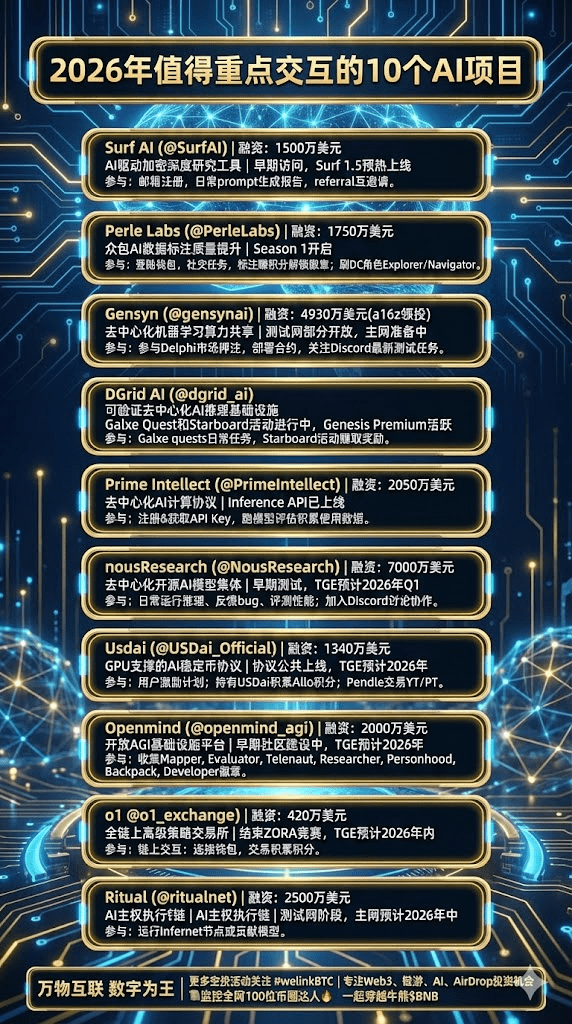 Attualmente i progetti focalizzati includono surf, gensyn, nousResearch, usdai, openmind, ecc.