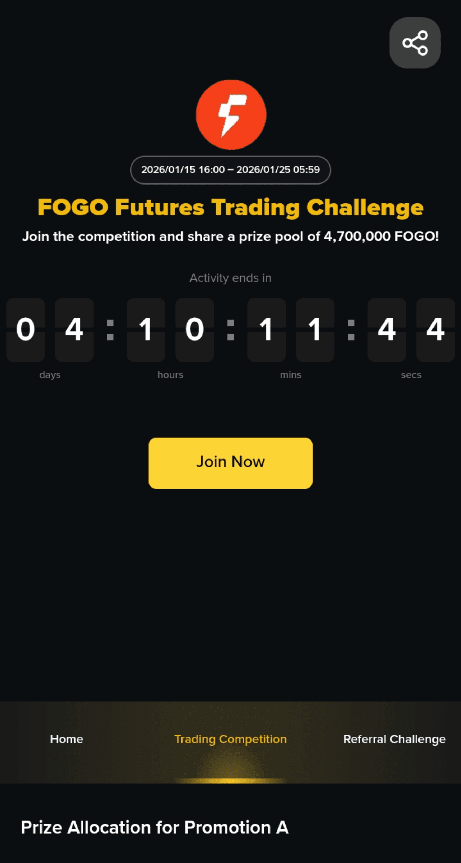 à tempo di mostrare le tue capacità di trading! Attualmente è attiva la Sfida di Trading FOGO Futures. à una grande opportunità per i trader di criptovalute, dove un totale di 4.700.000 token FOGO sarà offerto come premio.