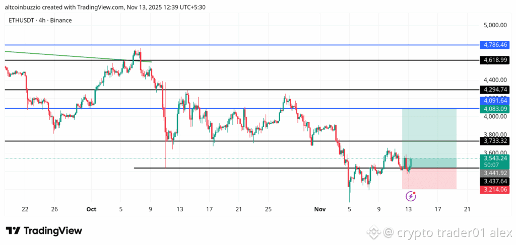 • ETH is trading below key long-term resistance (200-day SMA near ~$3,660) — bearish pressure.